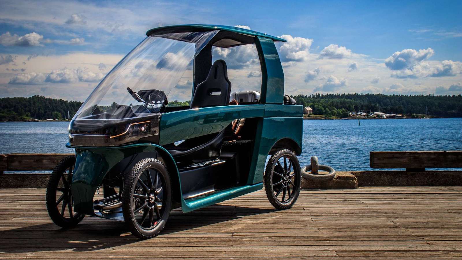 This unique form of transportation looks like a mini car from the exterior but uses an electric battery or pedals for its power.