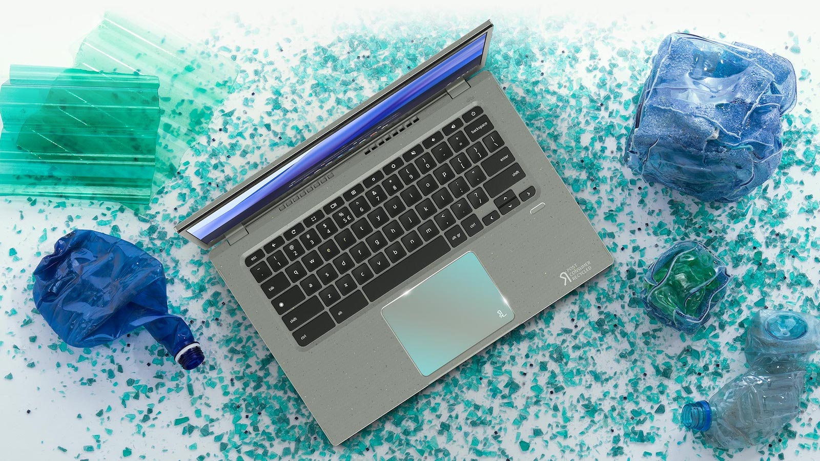 With a 30% PCR plastic chassis, it also has 50% PCR plastic keycaps and a 100% ocean-bound-plastic touchpad.