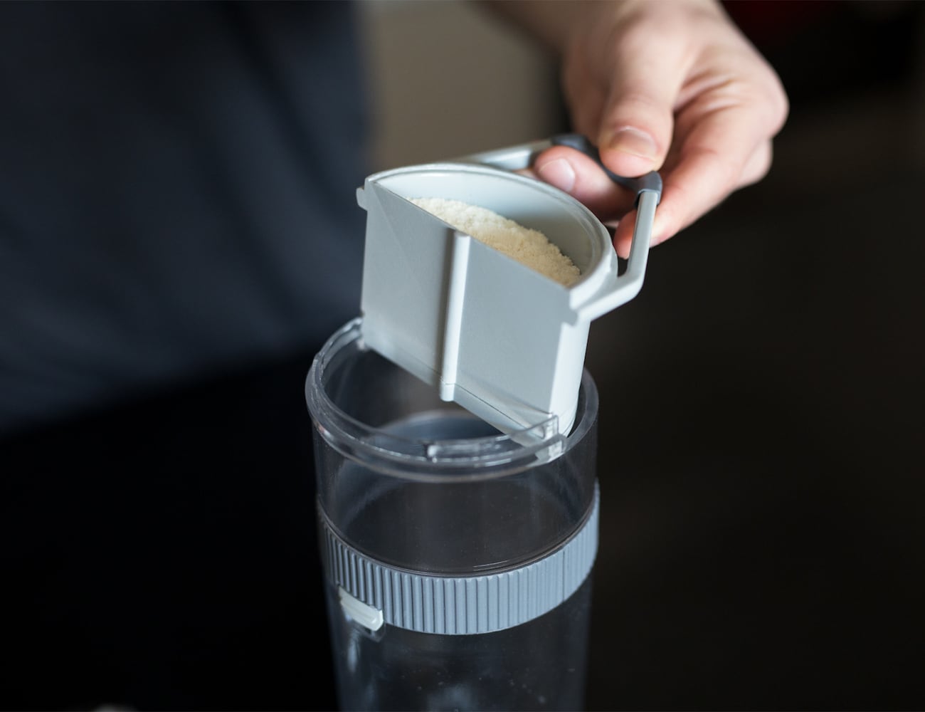 The built-in scooper holds up to 60 grams. Likewise, the supplement storage feature makes it easy to scoop, slot and go. In addition, you can hydrate throughout the day while keeping your supplements stored internally. The bottom storage compartment is handy for extra supplements or even accessories. REFLEX also comes with two weighted dumbbell mixers that effectively mix your protein powder. Complete with a leakproof top, you can confidently carry the shaker bottle with you throughout the day in your bag or backpack