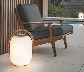 Enhance your outdoor living space by adding a warm glow with the Gloster Ambient Cocoon Outdoor Light.