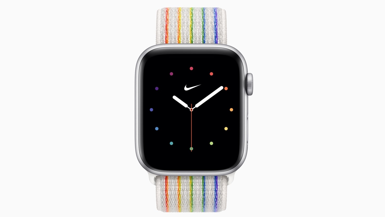 The Apple Watch Pride Edition bands include the Pride Edition Braided Solo Loop and Pride Edition Nike Sport Loop, representing the breadth of LGBTQ+ communities and experiences.