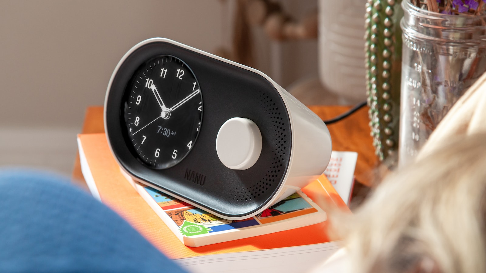Minimalist and modern, it has a discreet display that shows your alarm time immediately and beautifully.
