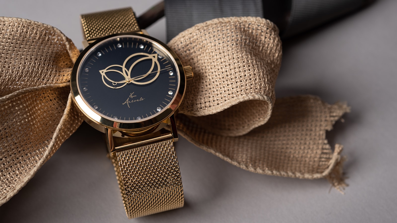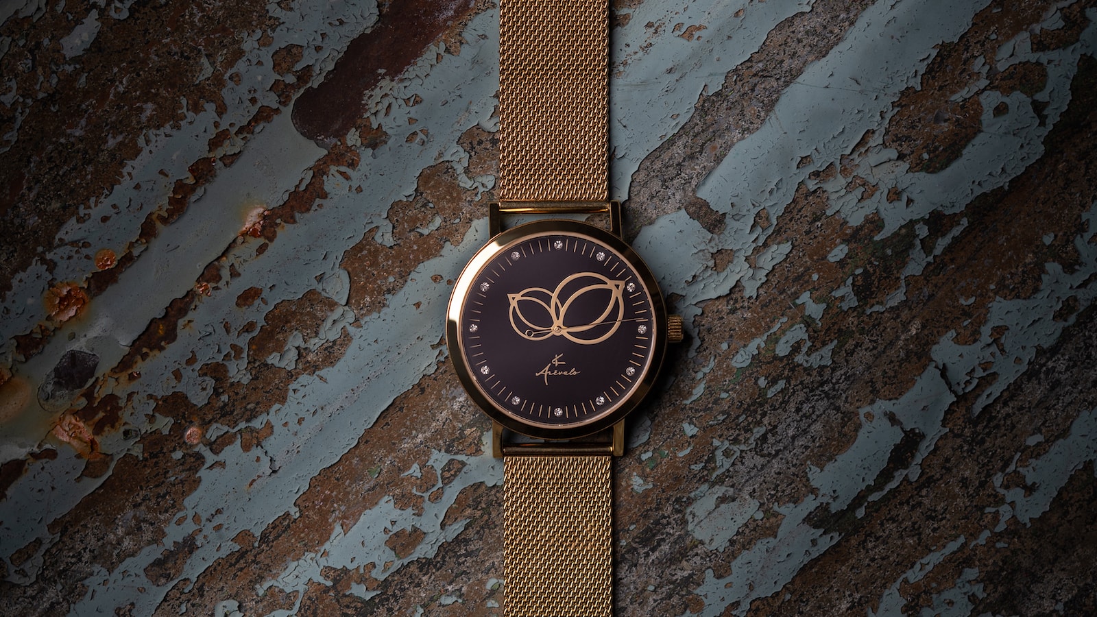 Wear a functional piece of jewelry that truly stands out with the Arévalo Watches Circularis gold timepiece.