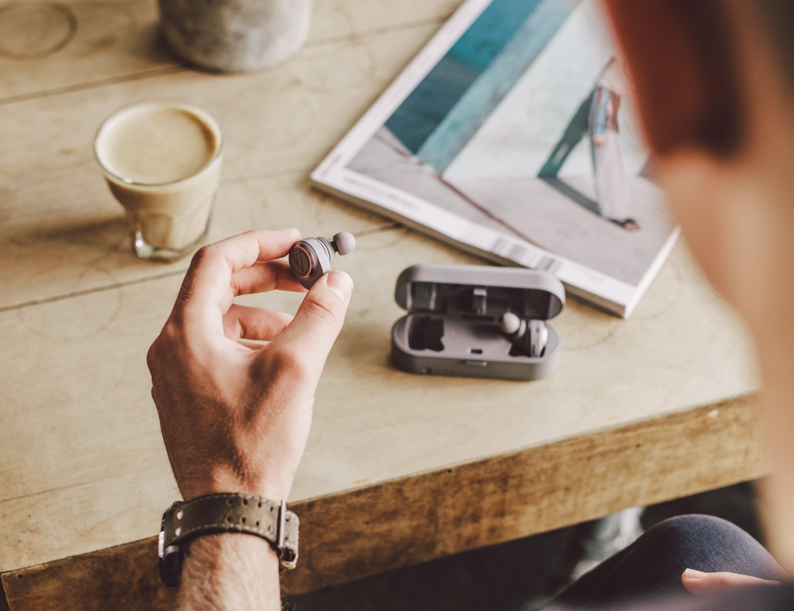 Offering up to six hours of playtime on a single charge, the True Wireless headphones come with a protective carry case.
