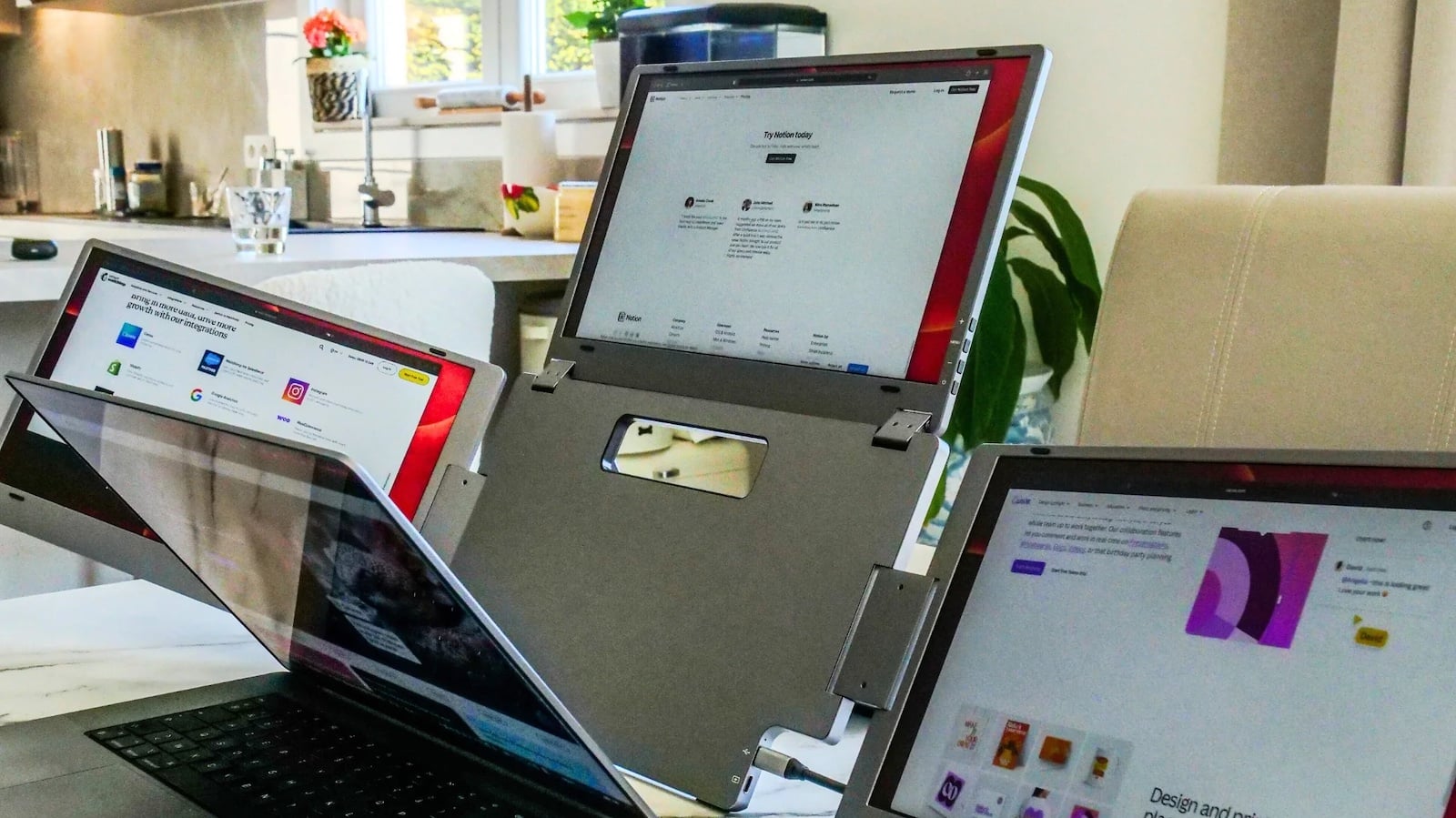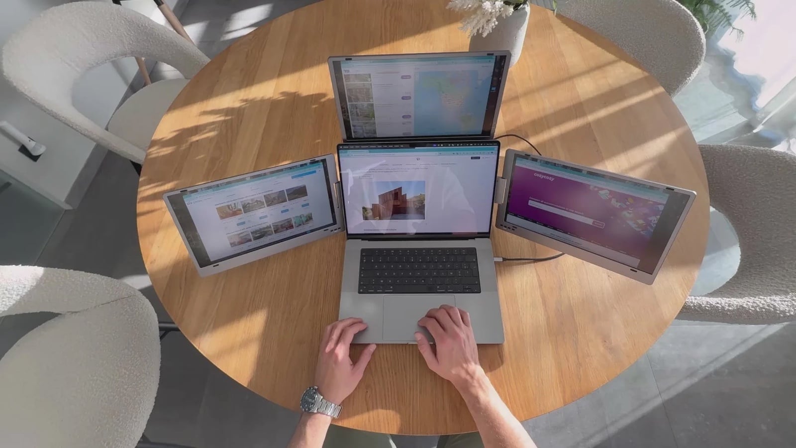 Supercharge your workflow with the Aura Displays Triple Boost 14 Pro triple-screen laptop extender. This portable monitor system levels up productivity.