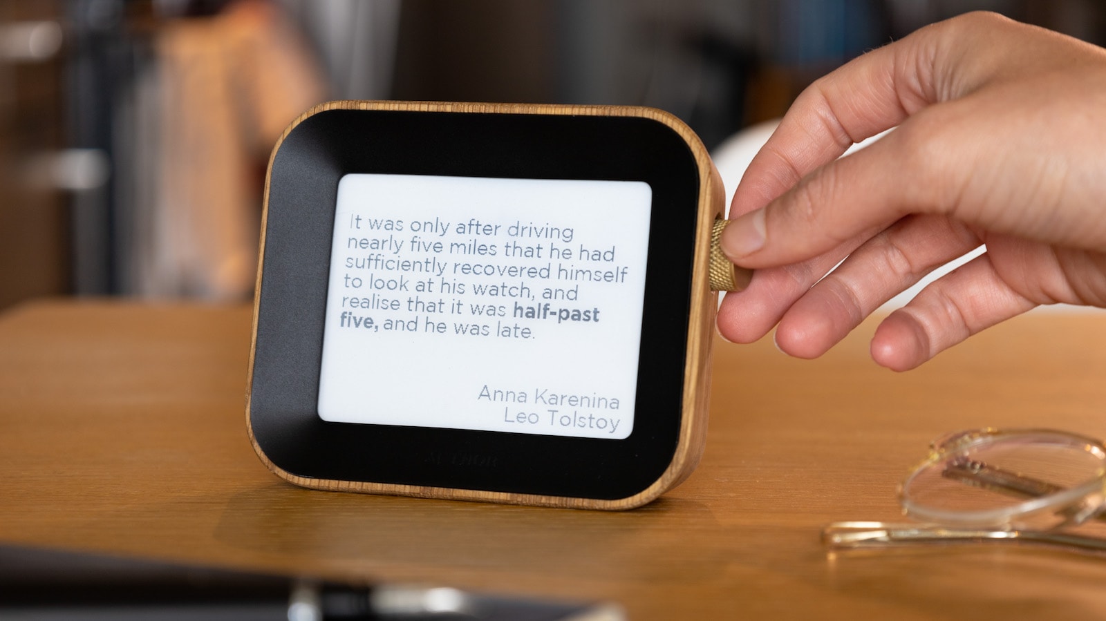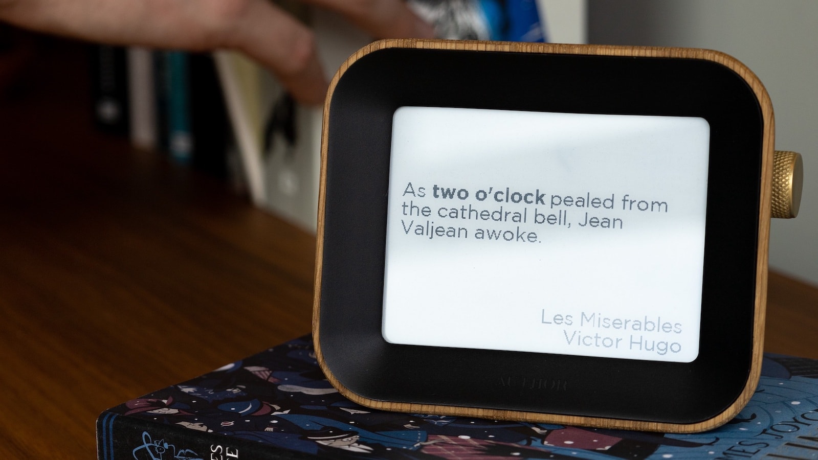 Pulling from thousands of books, dozens of genres, and six centuries, it displays a quote that mentions the current time every minute of the day.
