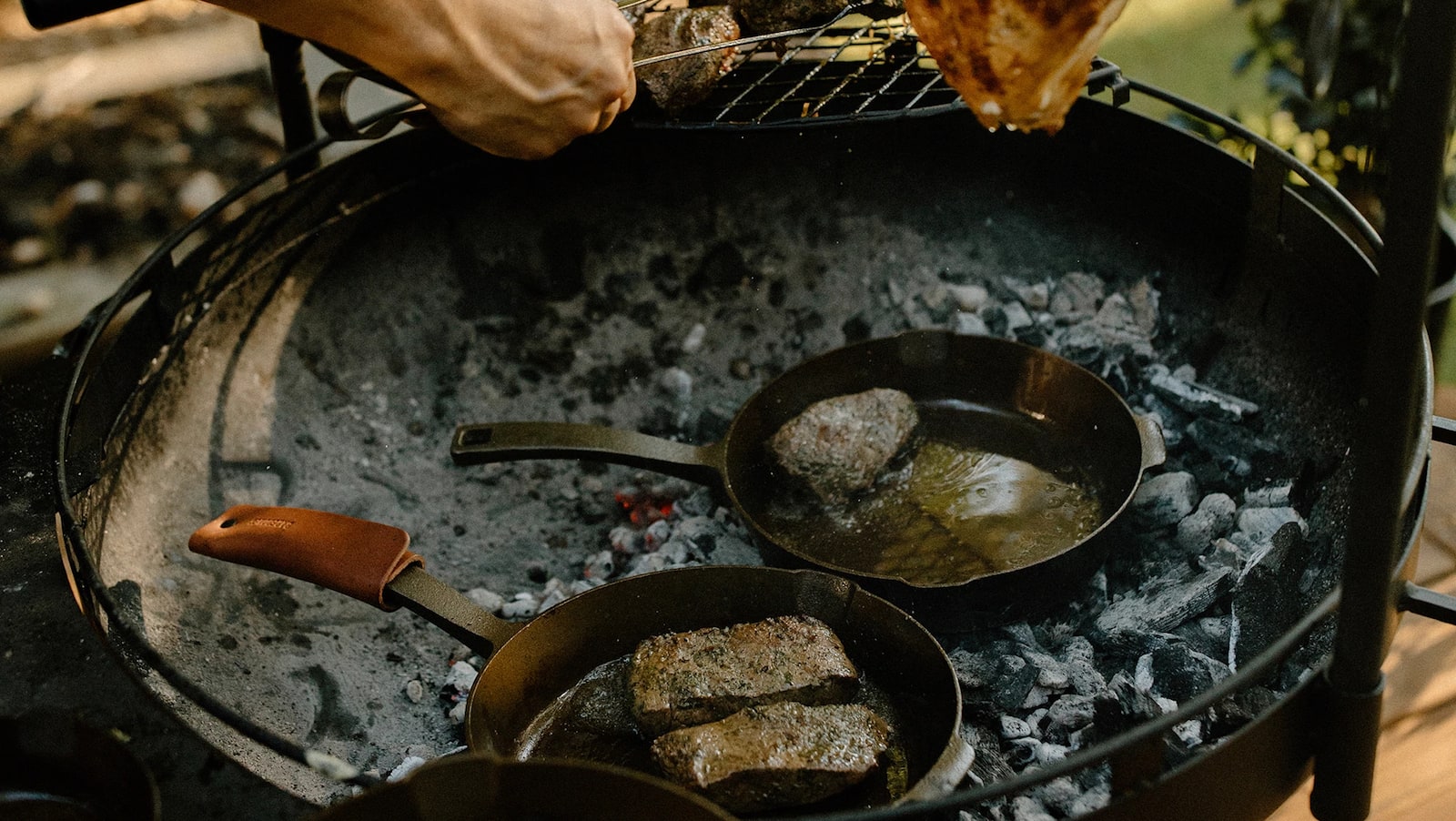 Moreover, the Barebones Cowboy Fire Pit Collection comes with a grill plate and pole for controlled-temperature cooking.