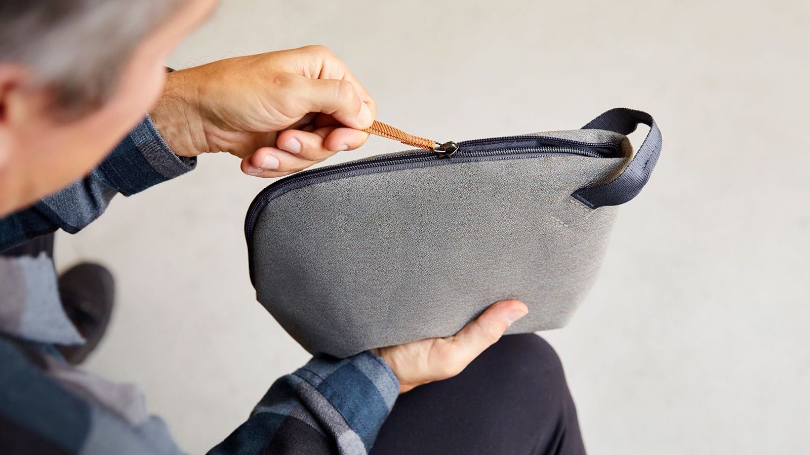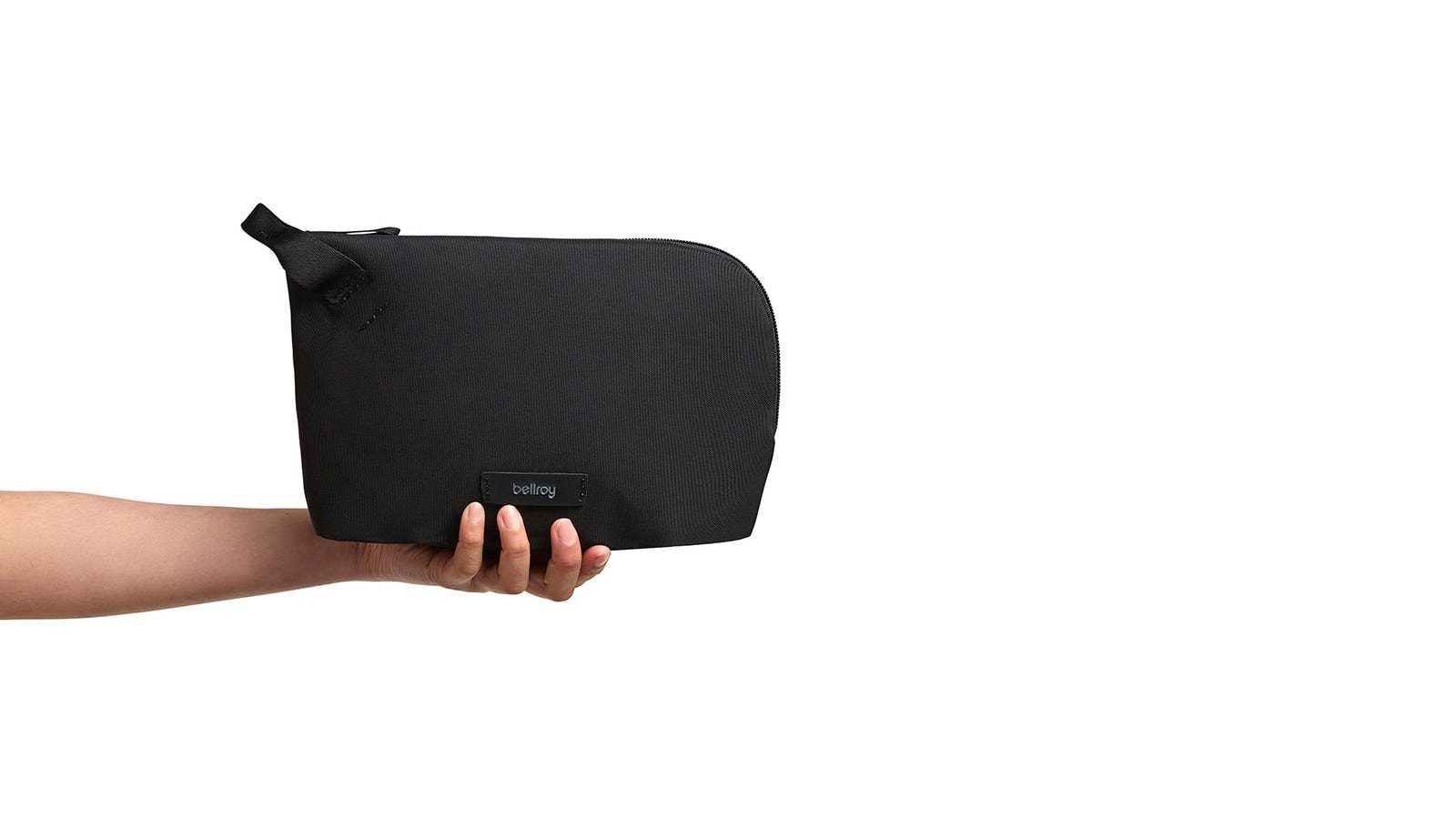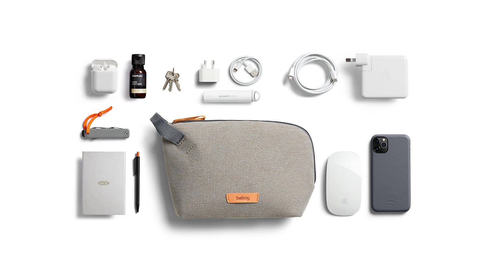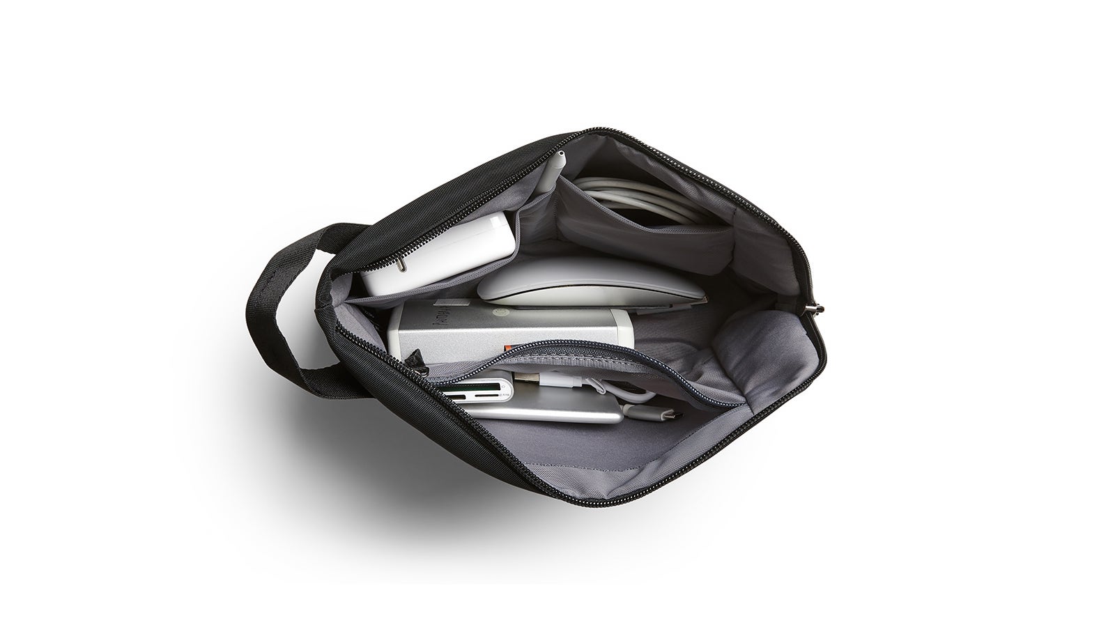 Bellroy Desk Pouch functional bag has a splayed opening so you easily see its contents: Overview