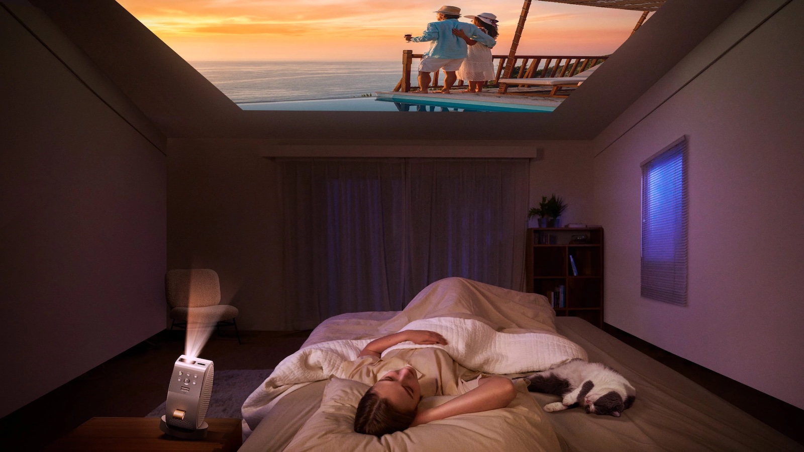 The BenQ GV50 ceiling projector combines convenience and immersive viewing for an unforgettable movie night experience.