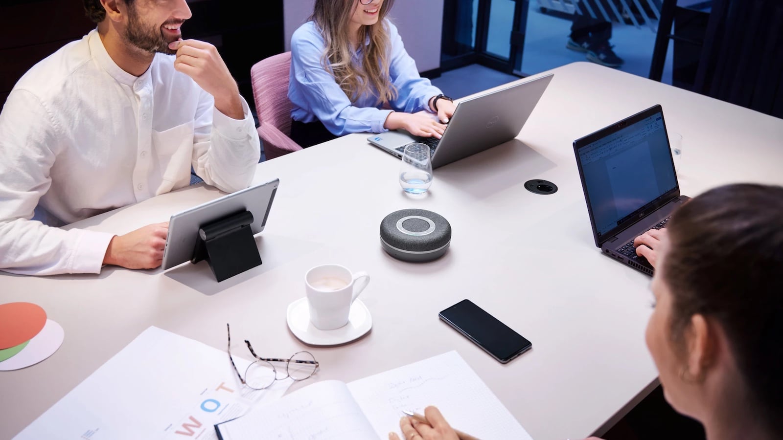 – Smart Mic Technology: The integrated 360° Smart Mic Technology ensures maximum freedom of movement for telephone calls or large meetings.