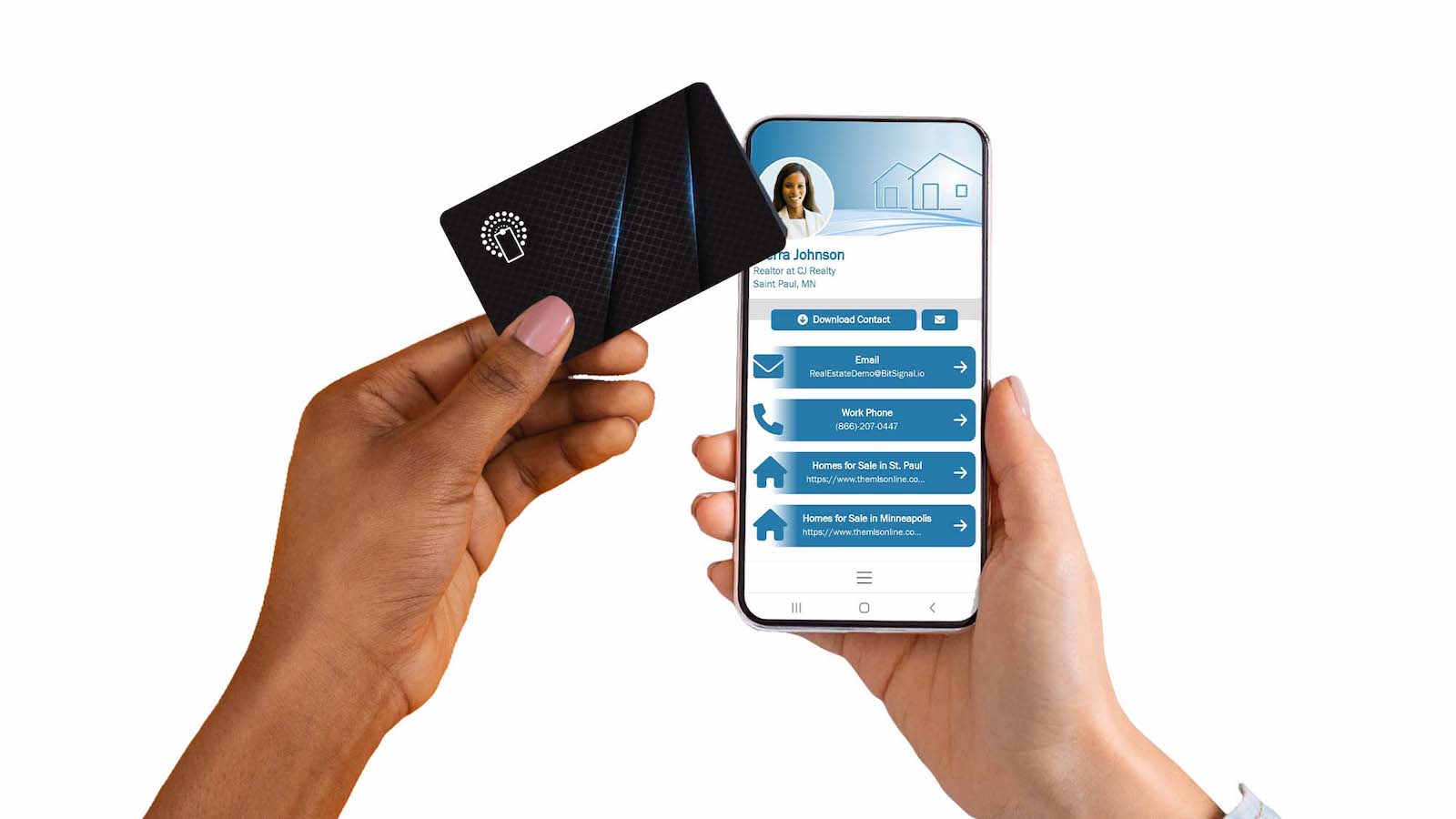Just program it with custom data of your choice, and then you can effortlessly transmit it to your clients’ and prospects’ smartphones with barely a touch.