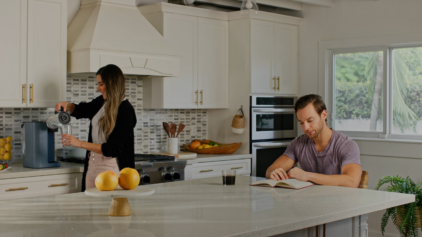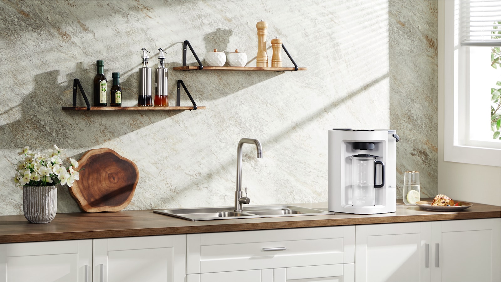 This countertop water purifier and premium-quality carafe boasts several features you’ll love.– No installation or plumbing required—simply plug into any power outlet and start filling it up.