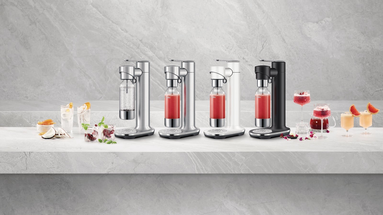 Add fizz to your favorite drinks with the Breville InFizz Fusion Carbonated Beverage Maker. It creates a variety of sparkling drinks!