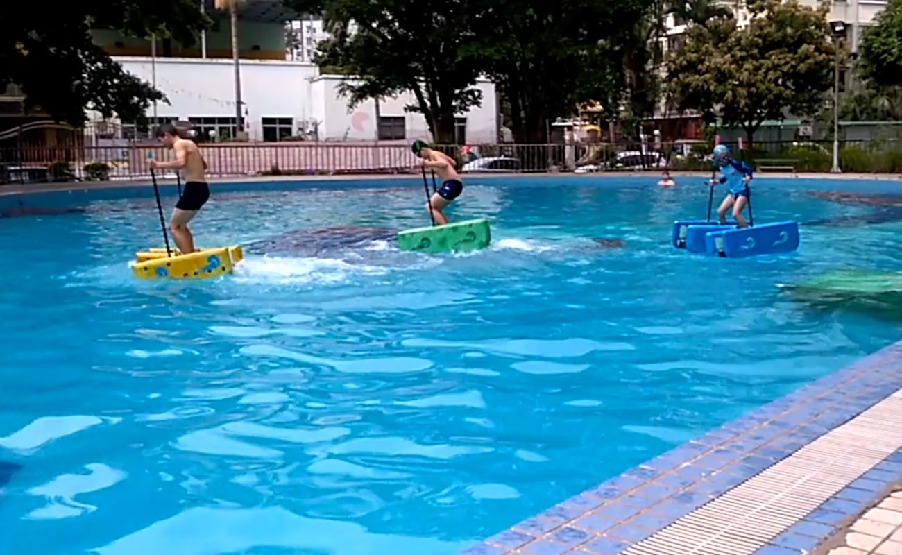 Entirely buoyant, this pool toy supports your weight as you put one foot on each side.