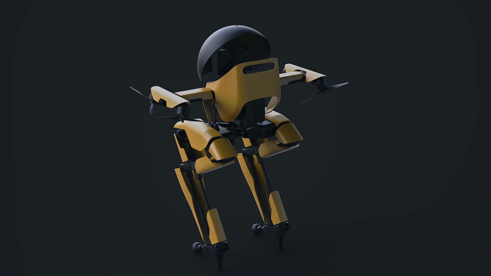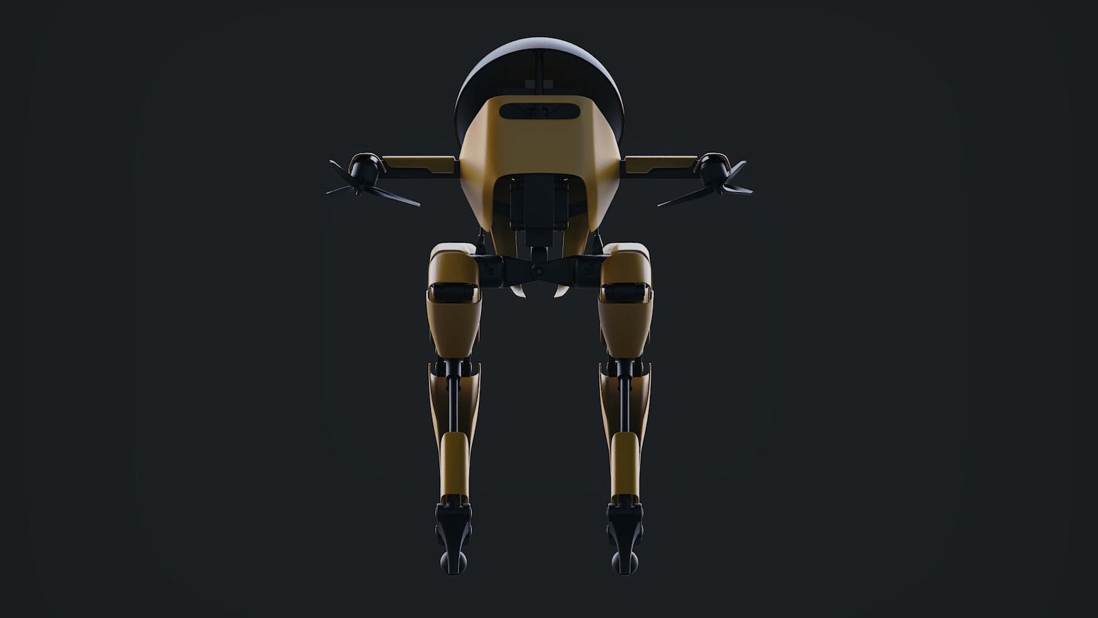 In fact, the propellers enable it to walk upright while the leg actuators adjust the legs’ position to move its center of mass forward.