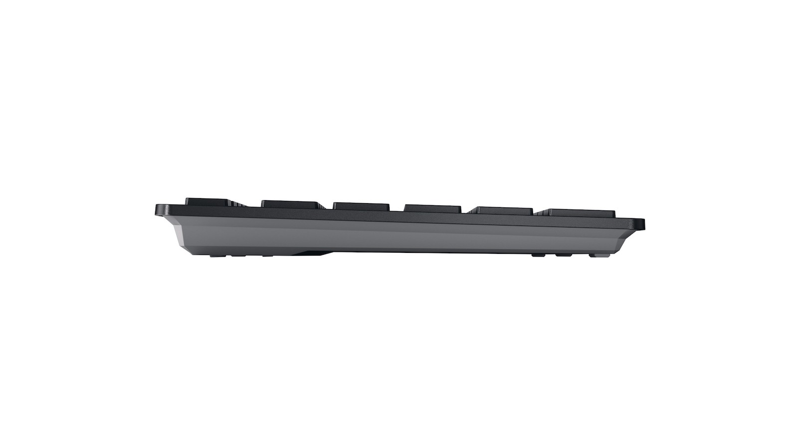 Take the super small Cherry KW 9200 MINI compact keyboard with you anywhere. With a convenient design, it connects in 3 ways: 2.4 GHz wireless, Bluetooth 5.0, and wired. Crafted with an extra-flat keyboard and a compact design, it makes it ideal for remote work. Additionally, this rechargeable keyboard is as useful as a full-size keyboard. Moreover, it lets you control up to 4 end devices at the same time. You can even easily switch back and forth between 2 Bluetooth channels, a 2.4 GHz radio channel, and a cable channel. Furthermore, it comes with a nano USB receiver, which lets you connect it to your computer at home or use it as a Bluetooth keyboard for your tablet in the café