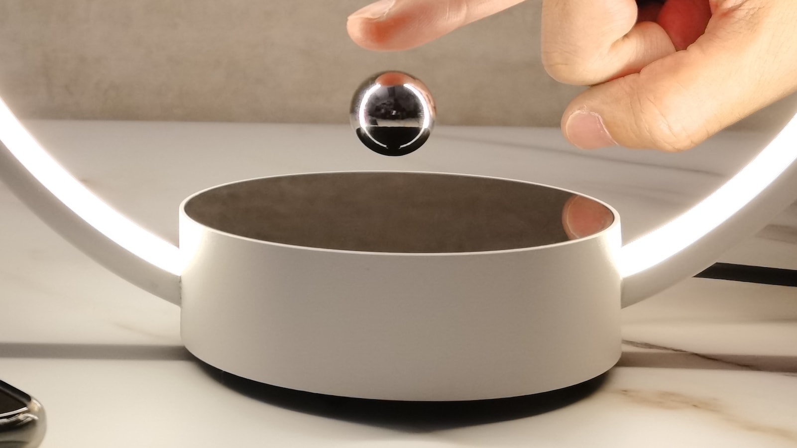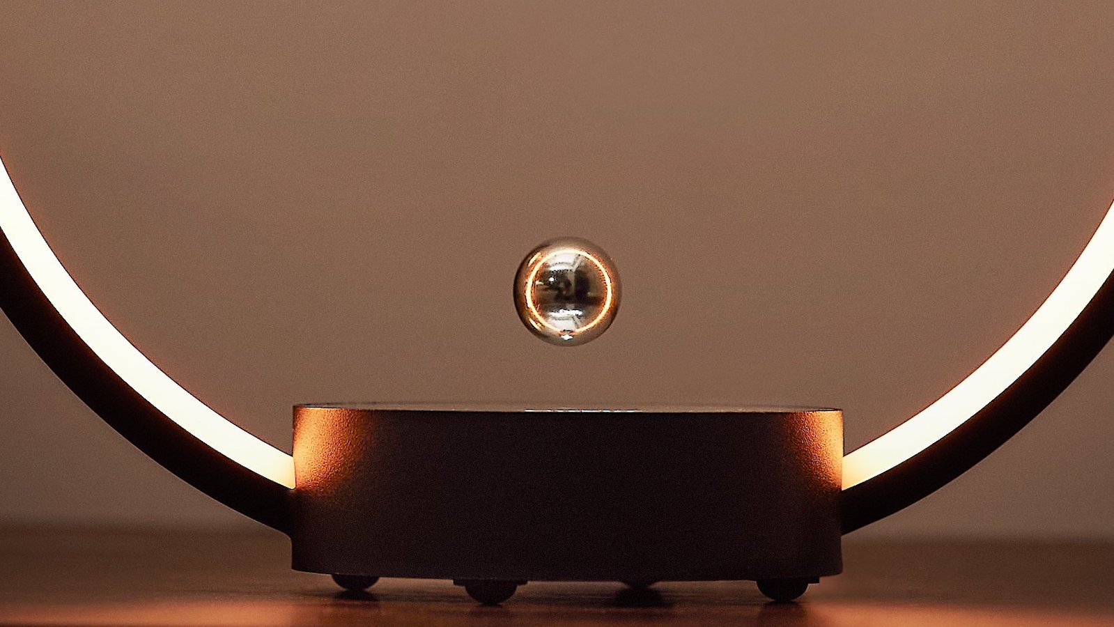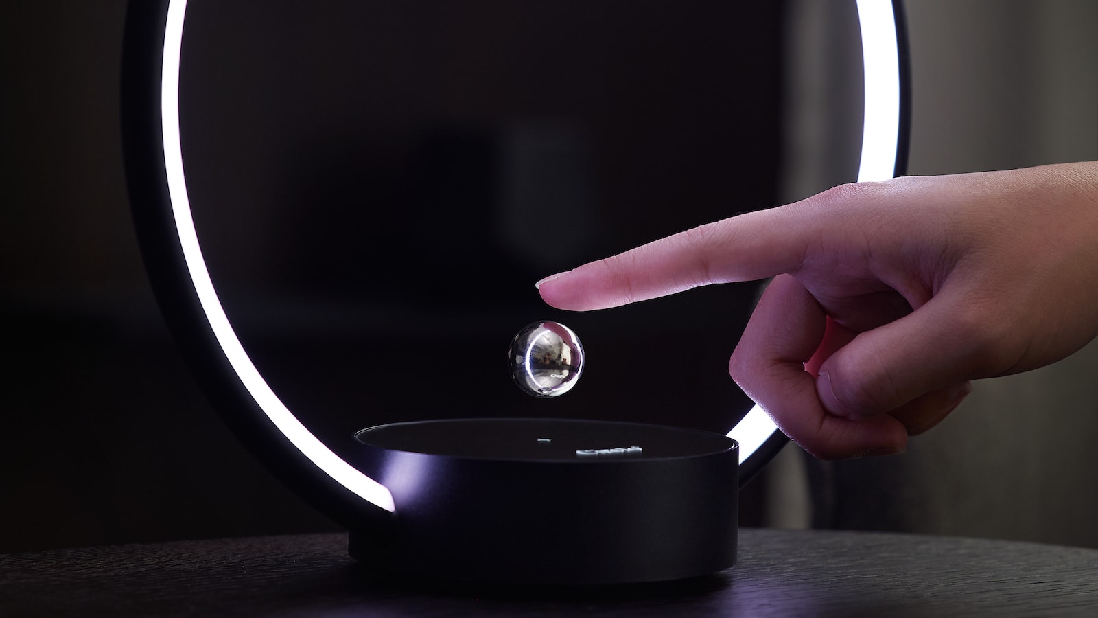 So all you have to do is press the ball to turn the lamp on. Additionally, you can trigger different preset mood light modes by tapping the ball. With a wireless induction system inside the flyswitch, it can even include a motor to make it move.