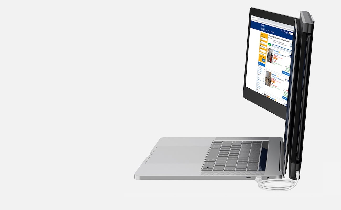 Warning: the Sliden Joy Le Slide Connected Laptop Display might seriously increase your productivity. This rotatable display connects to your computer whether you use a Mac or Windows laptop. In doing so, this thin extra laptop screen gives you 3,840 additional pixels and two extra screens. Furthermore, this triple laptop screen weighs just 1.3 kilograms, so it won’t add much weight to your lightweight laptop setup. On top of that, it’s only 17 millimeters thick.