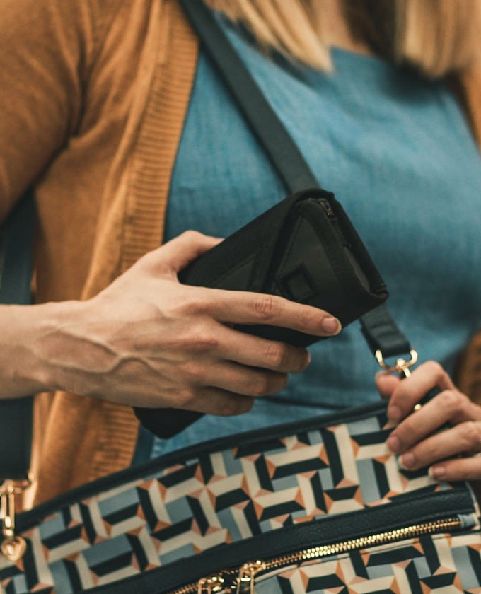 Unlike other carriers, this case doesn’t announce that it’s pepper spray. Additionally, you can hold it like a clutch, or you can clip it to your purse for easy access. This carry method will allow you to carry your pepper spray discreetly with your finger on the activation button.