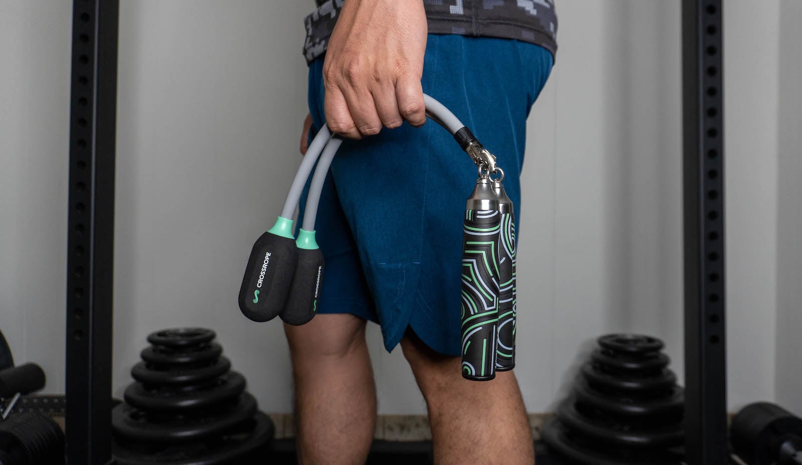 Jump rope with ease in dorm rooms and studio apartments with the Crossrope Ropeless Collection quiet jump ropes.