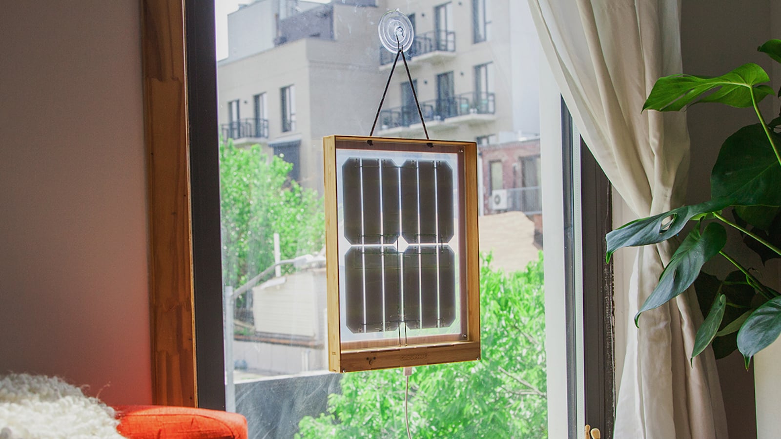 With its bamboo frame that hangs on a suction cup, it provides a way for renters to use solar energy.