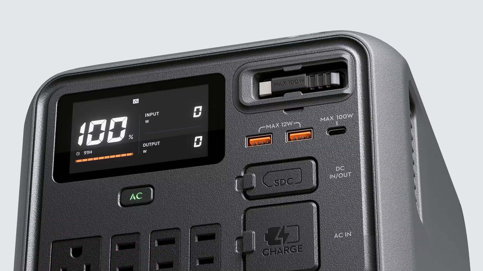 - Retractable 100W Cable: A built-in retractable cable handles 100W charging and stows neatly inside the unit, reducing cable clutter while traveling.