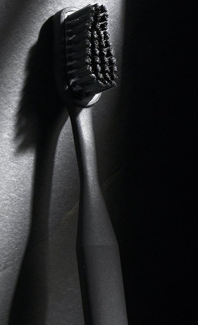 With a black handle, this toothbrush comes with multipurpose packaging that becomes a carry case with zipper closure, making it great for travel, too.