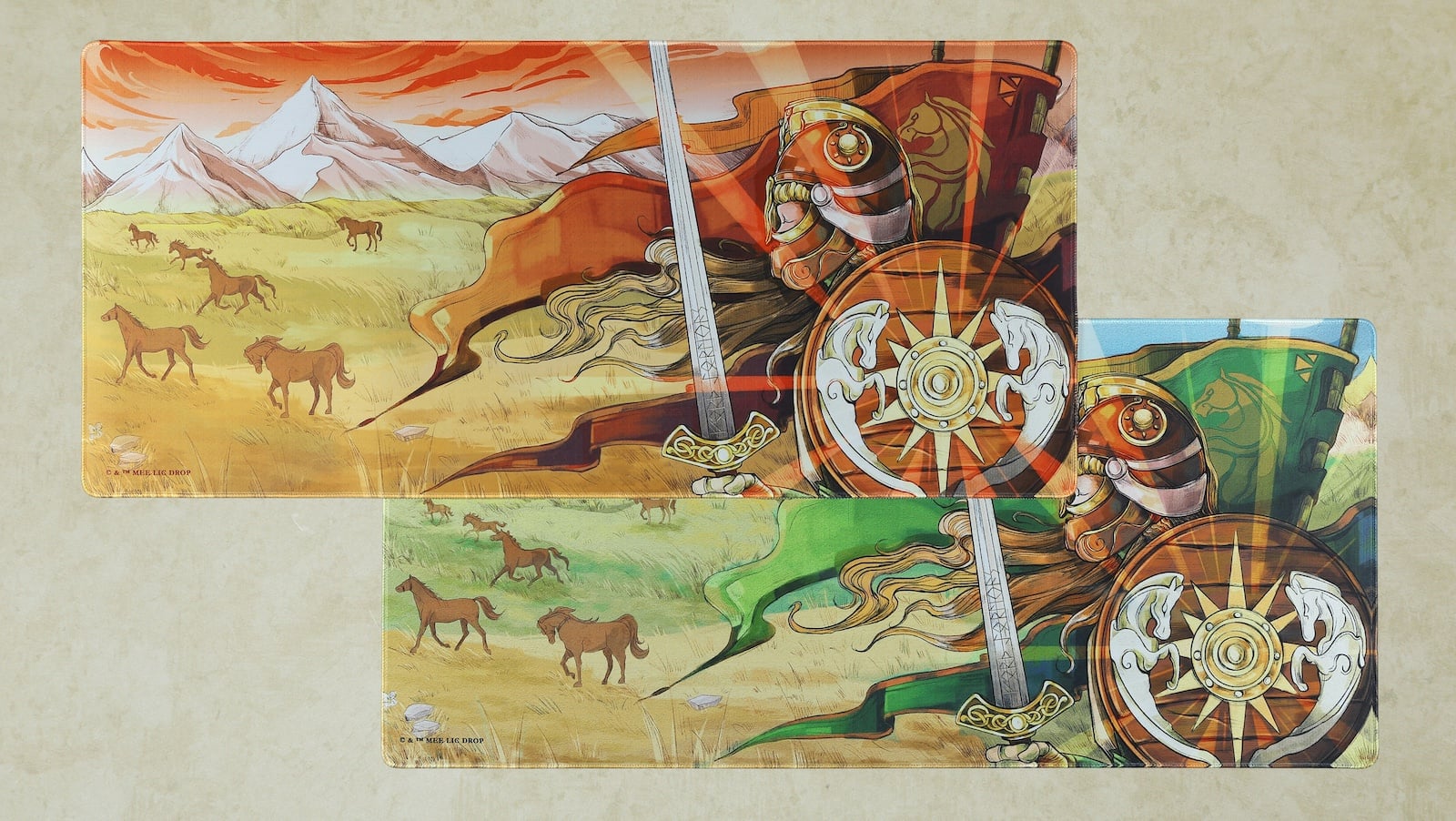 Drop + The Lord of the Rings Rohirrim Desk Mat depicts a key scene in intricate detail: Overview
