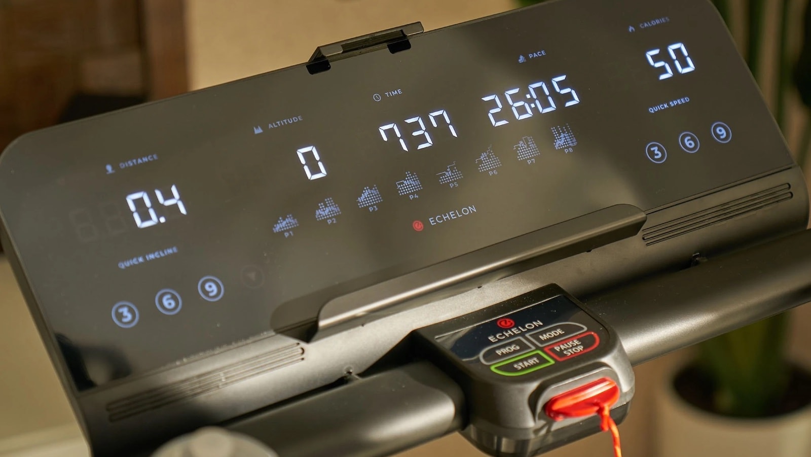 The Echelon Stride weighs 156 pounds altogether, and its built-in wheels make it easy to fold up and move around for convenience.