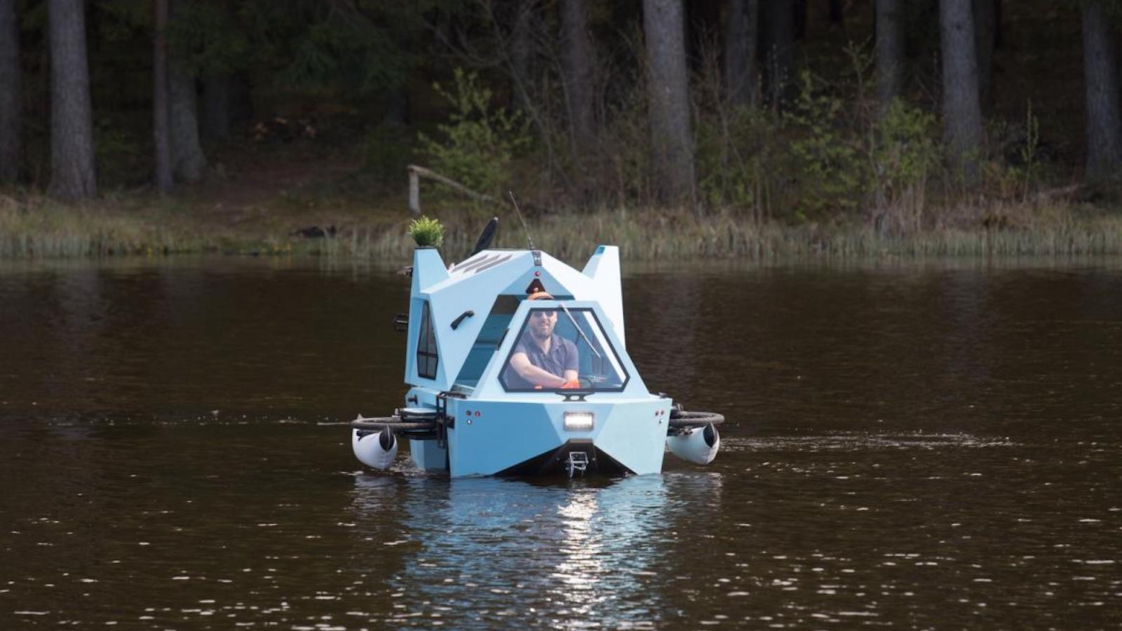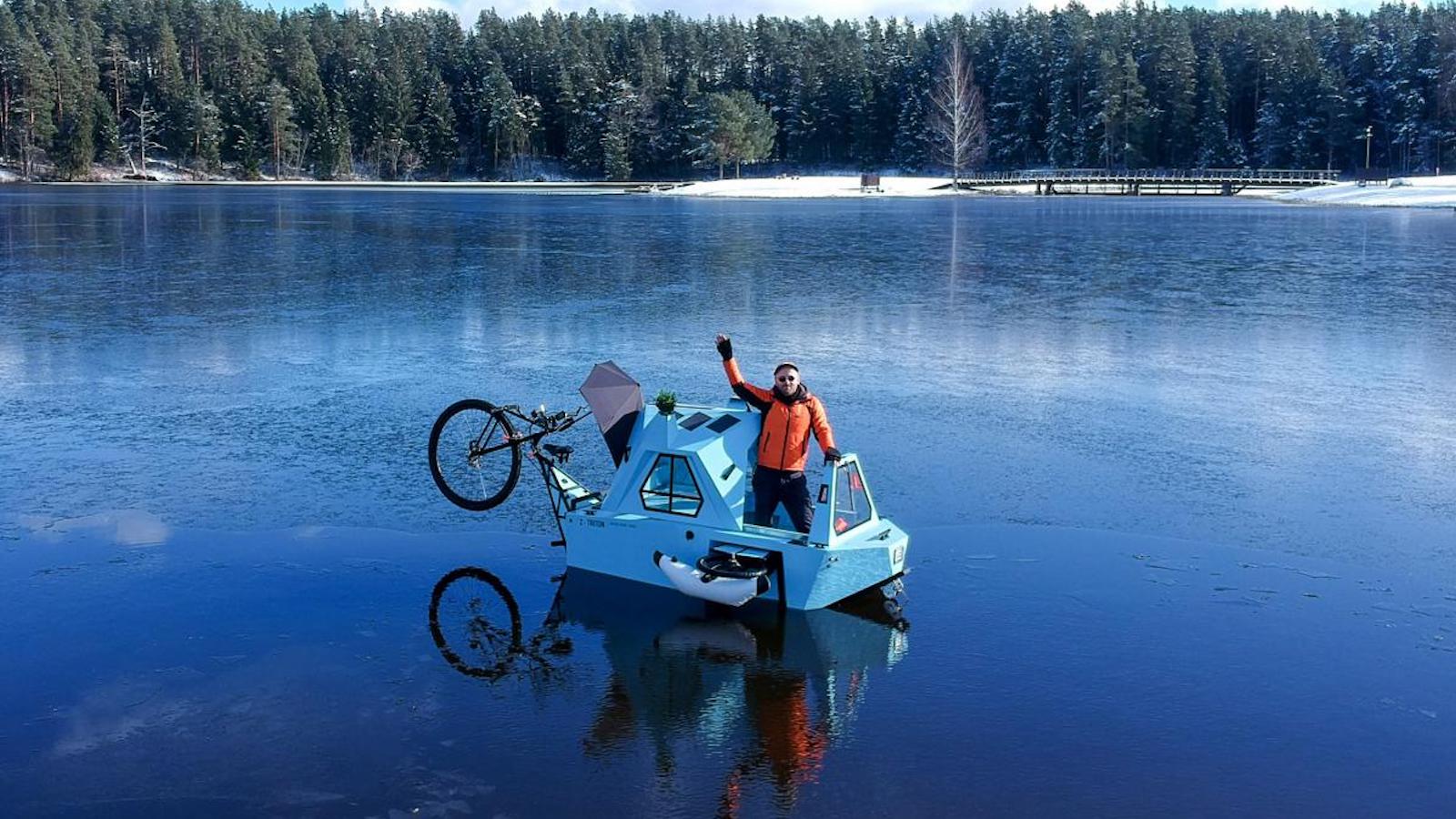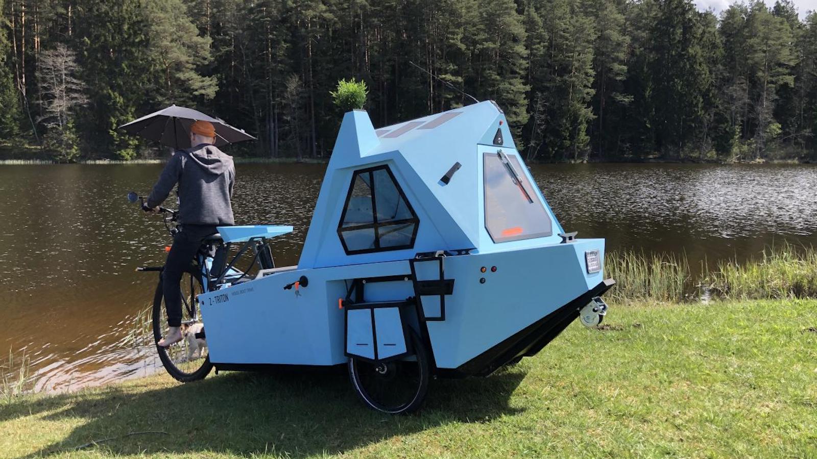 Zeltini Z-Triton Electric Houseboat travels over land and water: Overview