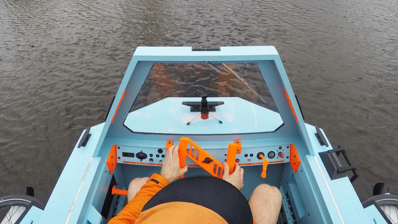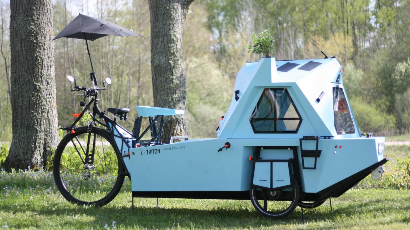 The Zeltini Z-Triton Electric Houseboat is everything you need for a weekend away for two adults. It’s a house, boat, and trike combined that can travel over land and water. This incredible work of art uses an electric assistance. As a result, it’s easy and fun to ride on a variety of conditions. Additionally, this blue and orange vehicle uses a tricycle on one side that conveniently folds up to transition from land to water.