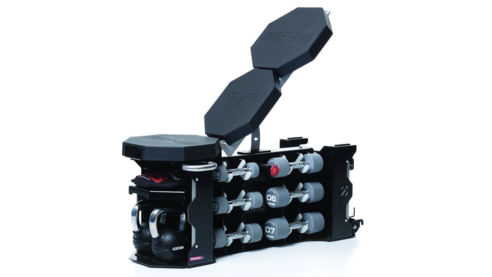 Escape Fitness STRONGBOX training bench stores 6 pairs of dumbbells & 2 medicine balls: Overview