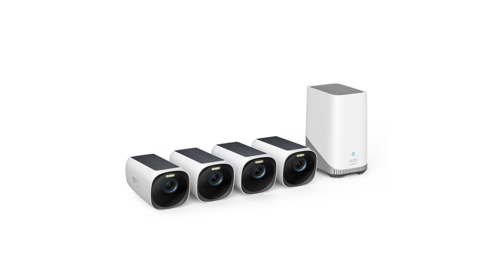 Achieve peace of mind with the eufy eufyCam 3 S330 AI outdoor security camera set. Featuring a solar panel, the 4-cam kit and 1 TB hard drive ensures continuous operation.