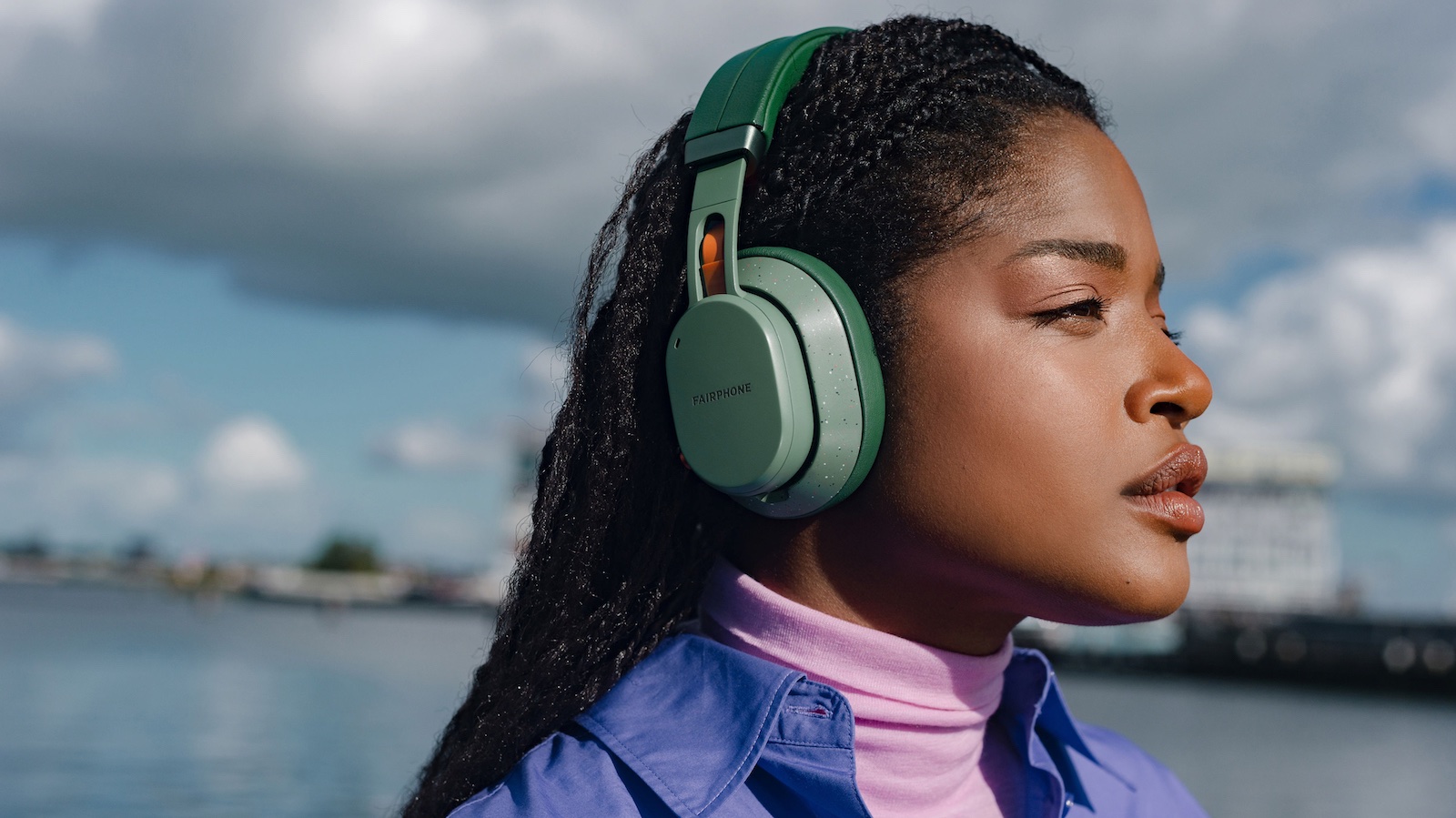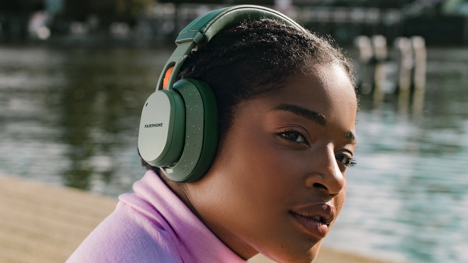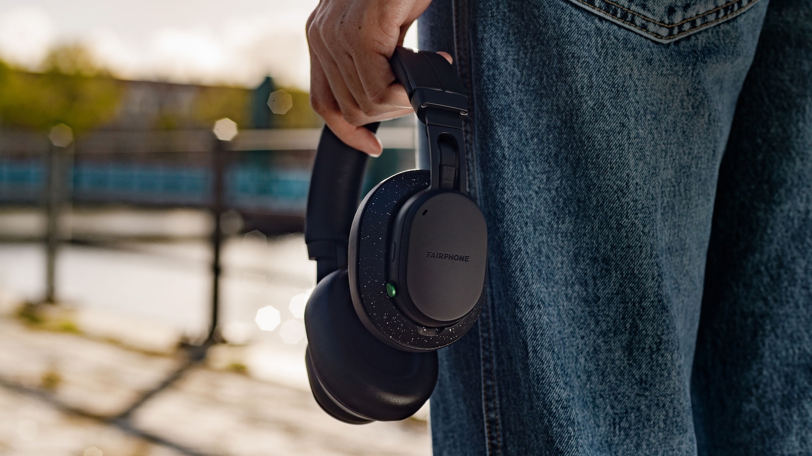 Crafted with recycled materials, the Fairphone Fairbuds XL modular over-ear headphones showcase sustainable design.
