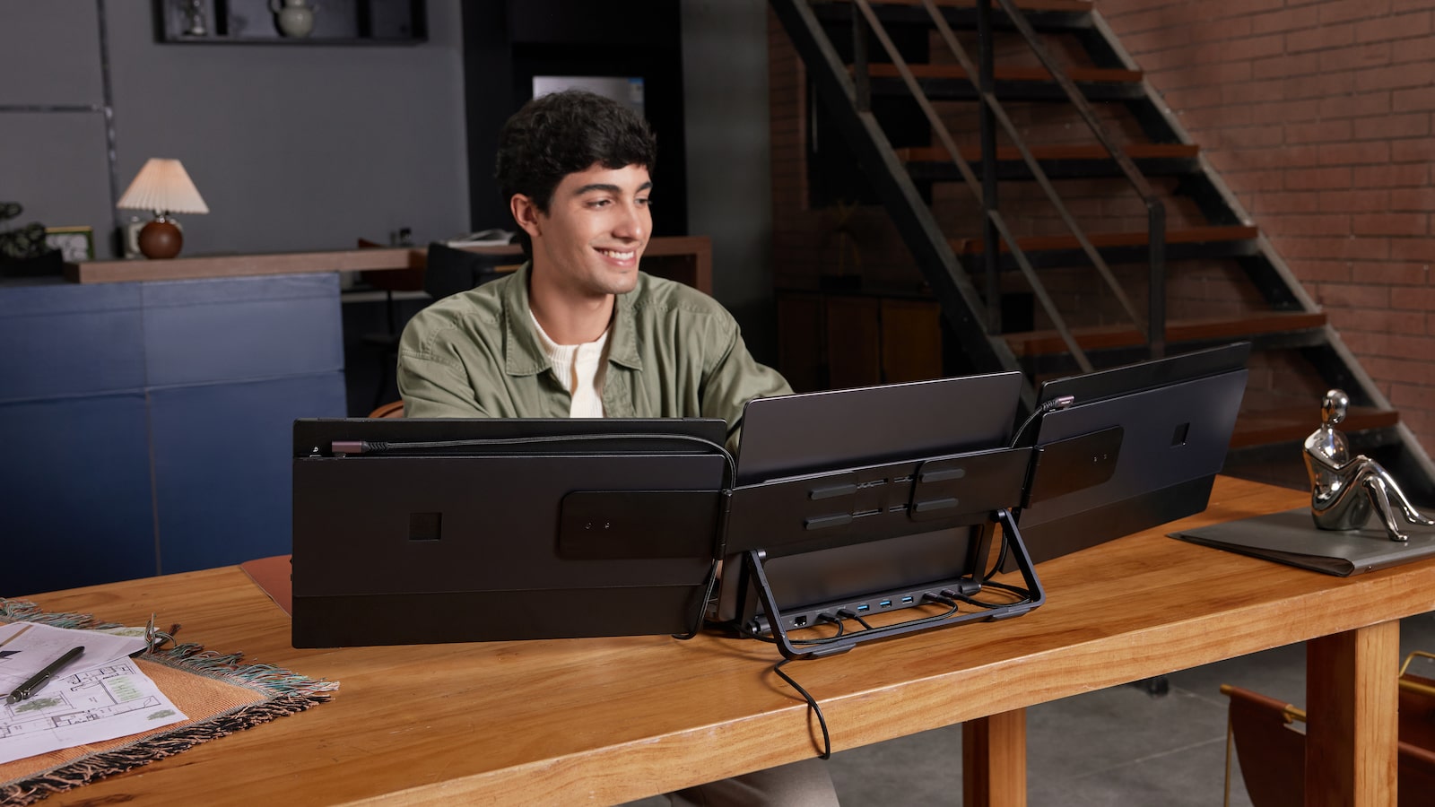 – 360° Rotation & Multiple Modes: Stack, mirror, extend, or present—each screen rotates freely for flexible workflows.