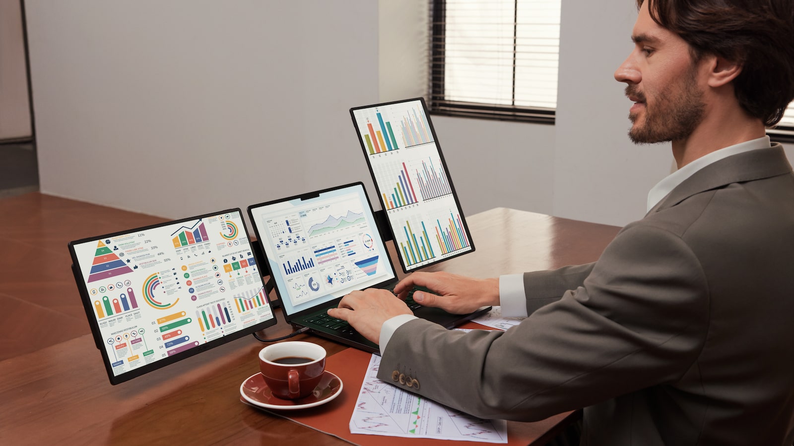 FlipGo Horizon: Snap-On Tri-Screens brings full desktop power to your laptop—no matter where you are. Designed for mobile professionals, creatives, and remote workers, it transforms a single screen into a triple-display workstation in seconds.