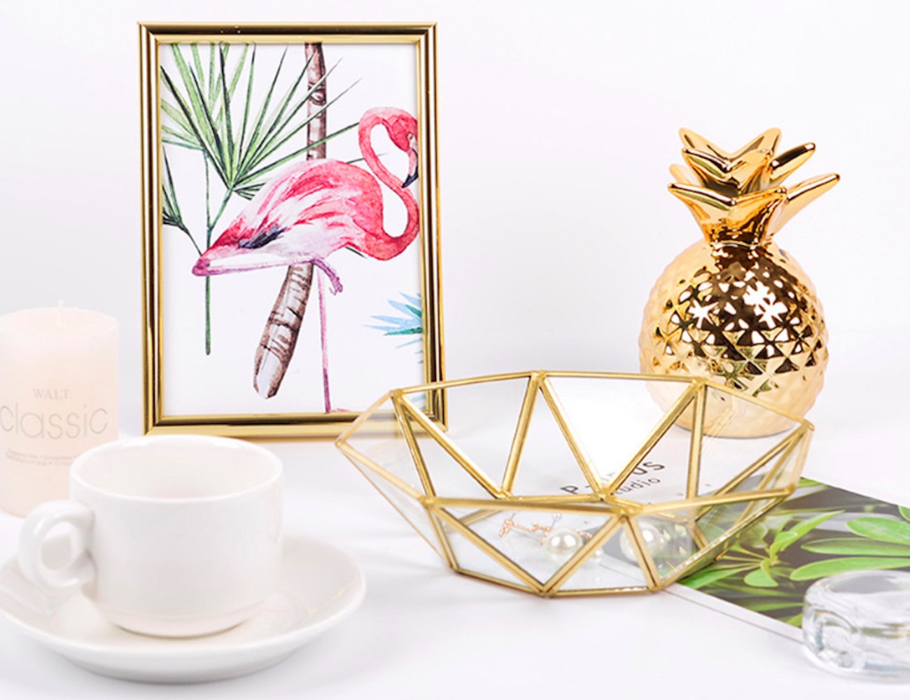 If you want to upgrade the way you organize your small items, look no further than the Geometric Copper Glass Valet Tray.