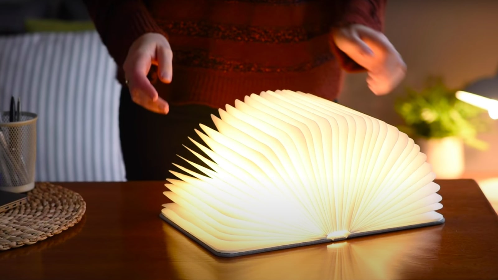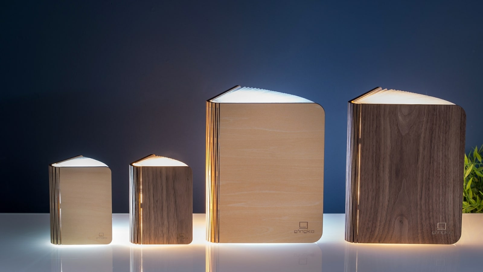 Gingko Smart Book Light transforms from a wooden book to a sculptural light with soft LEDs: Overview