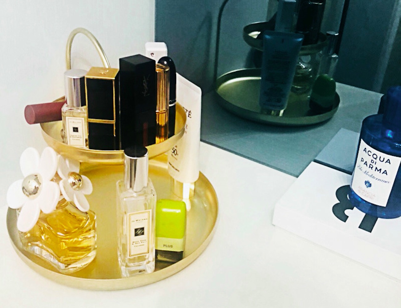 Connecting the two shelves is an elegantly curved arm which is also made of the same metal material. Coming in all gold, the Organizer Rack easily blends in with any decor from modern to retro to boho
