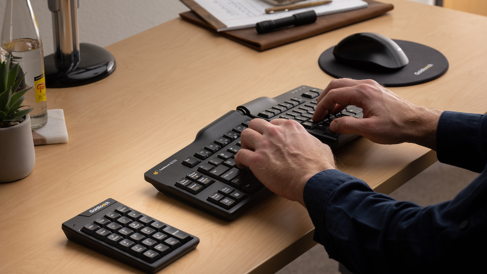 Transform your typing routine with the Goldtouch Elite–Adjustable Ergonomic Keyboard for PC or Mac and discover unparalleled comfort and flexibility.