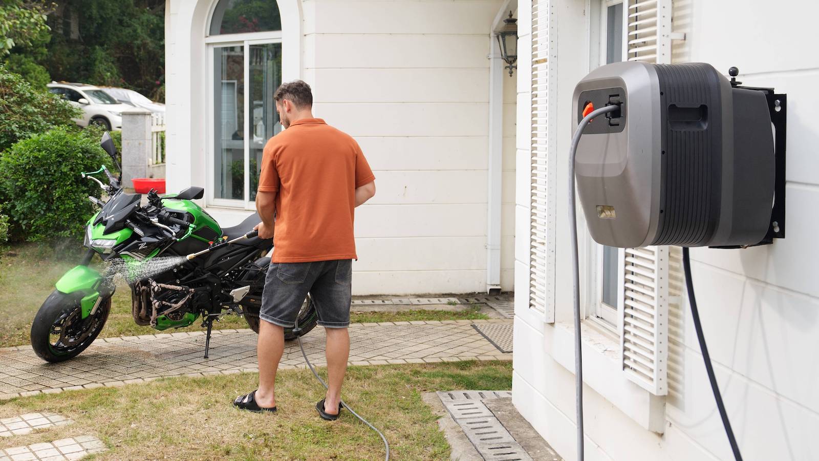 – With a 65-foot-long high-pressure hose, it lets you easily clean all around the house and vehicles.