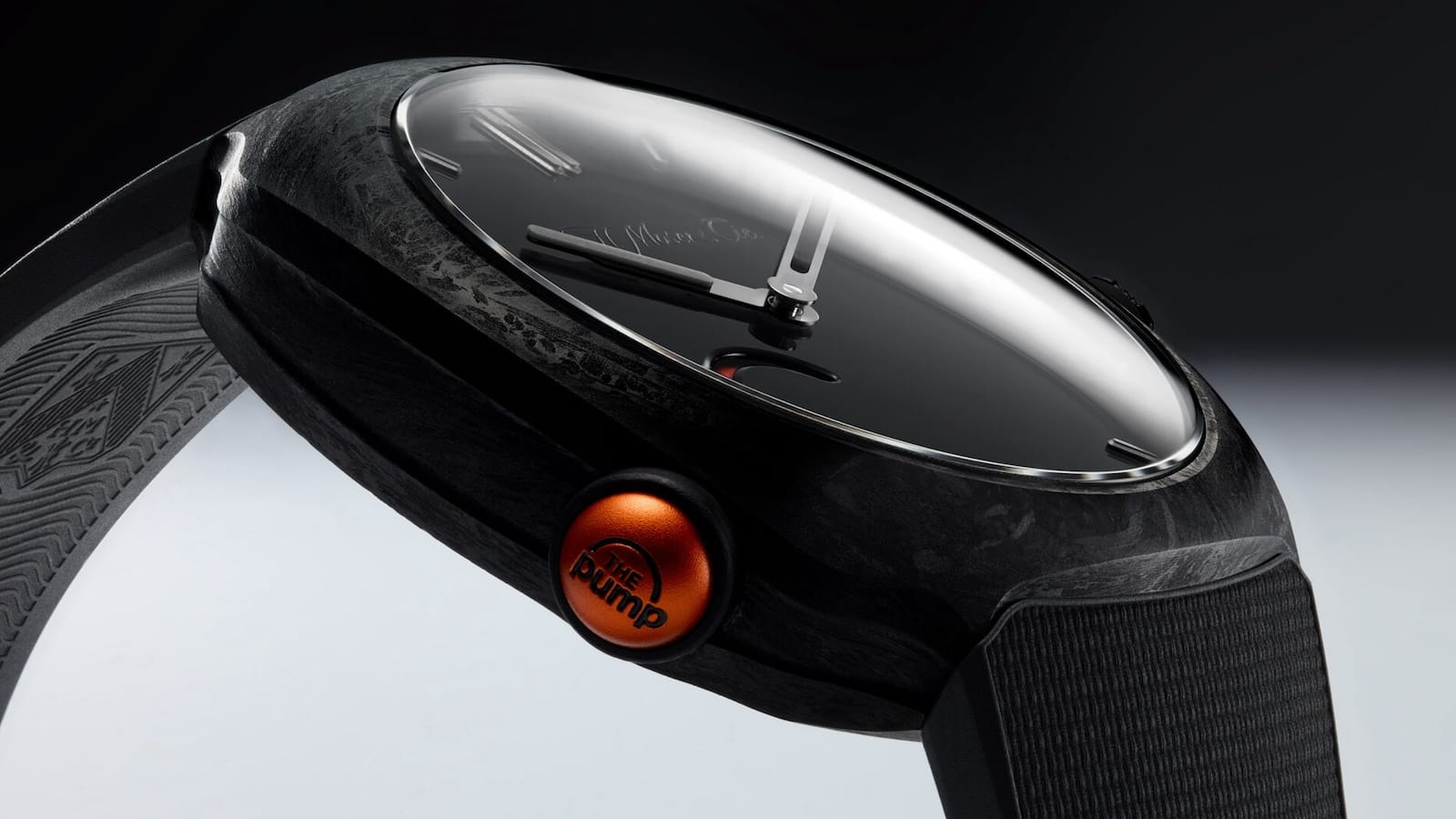 The Streamliner Pump Black is a limited-edition mechanical watch born from a collaboration between H. Moser & Cie. and Reebok. It turns the iconic Pump gesture into a winding mechanism.