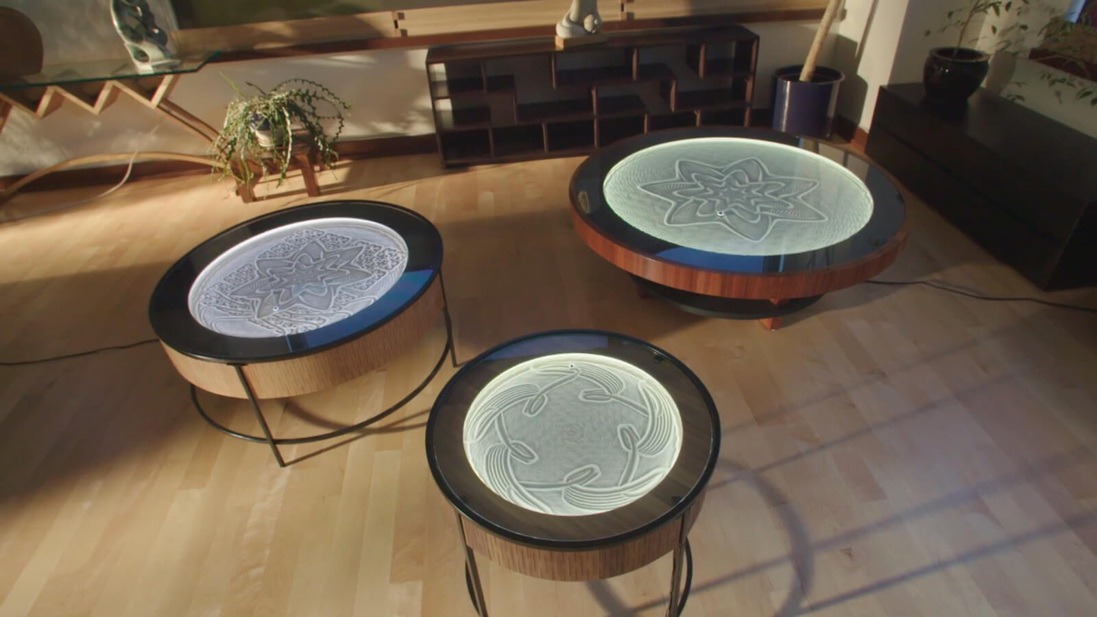 The Sisyphus Industries Kinetic Art Table Hardwood Furniture brings a stunning mood to any living space.