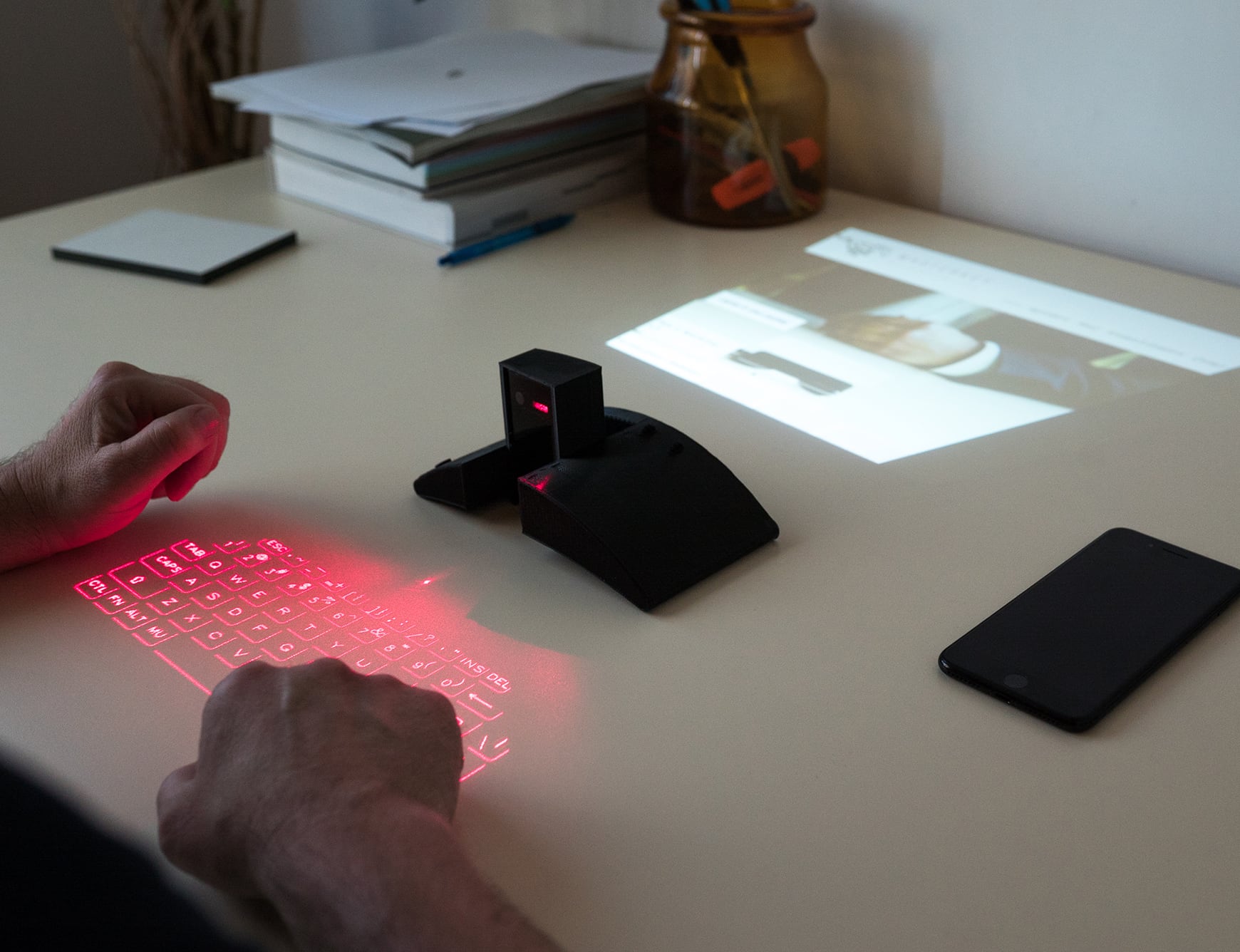 The built-in laser keyboard and projector give you the experience of your laptop with a device the size of a phone.