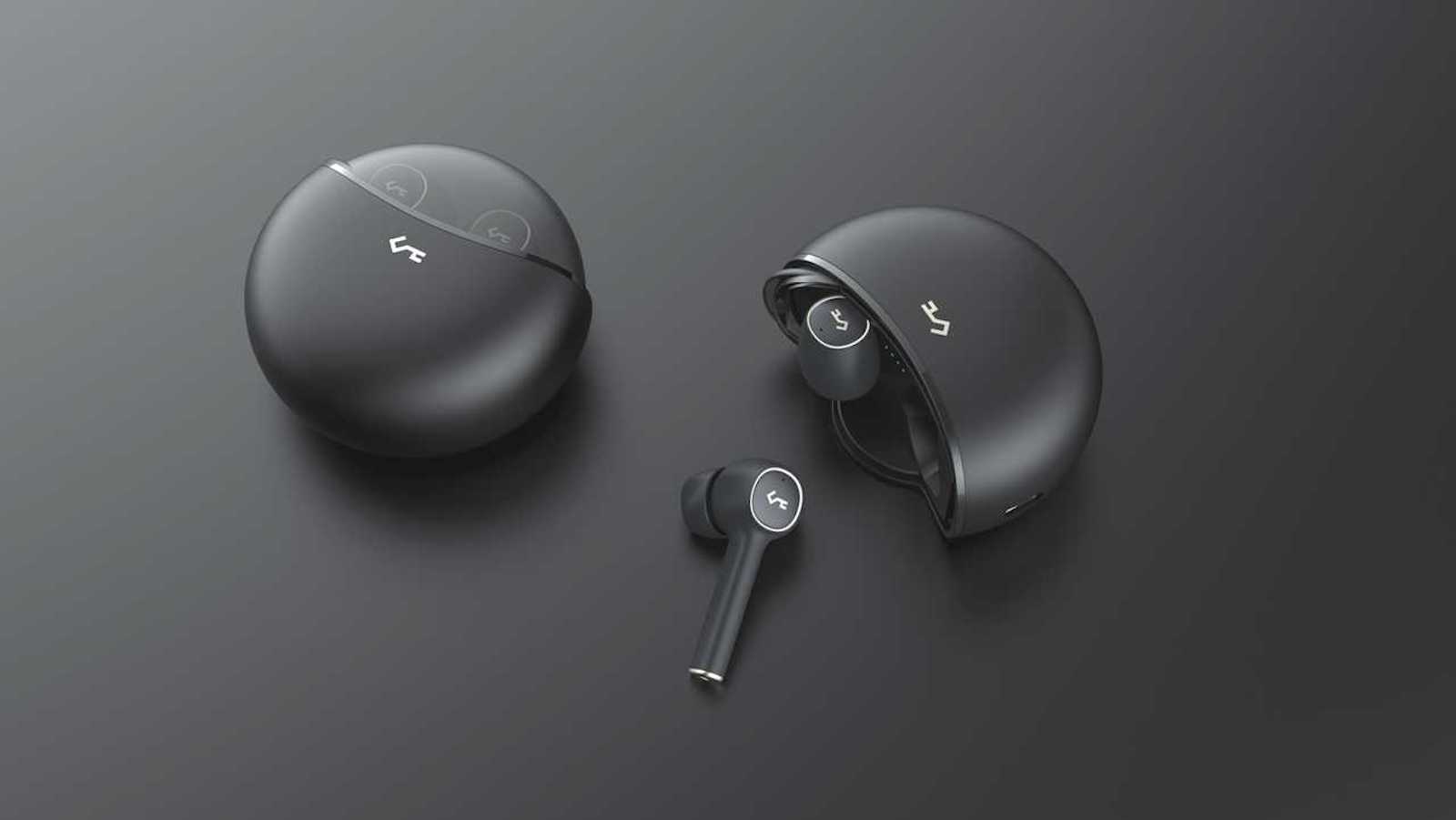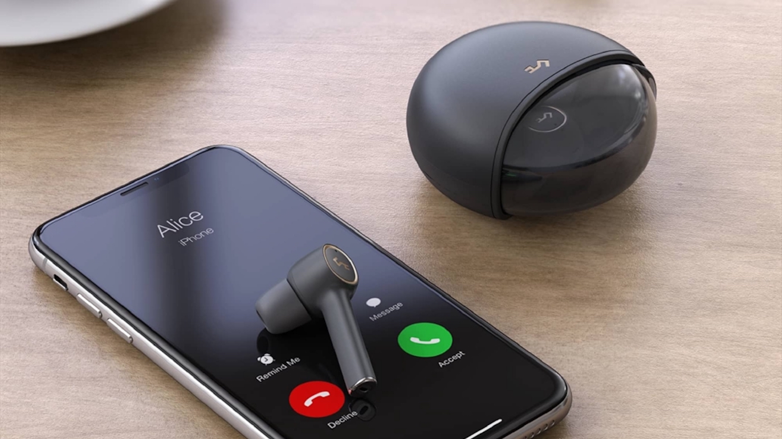Coming in a cool, circular charging case, these noise-canceling earbuds turn on when you slide open the lid.