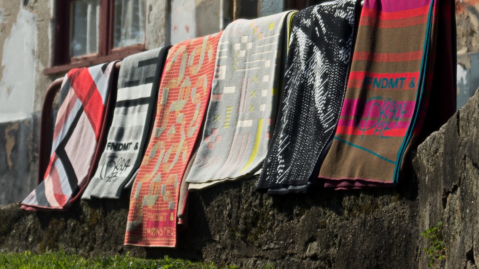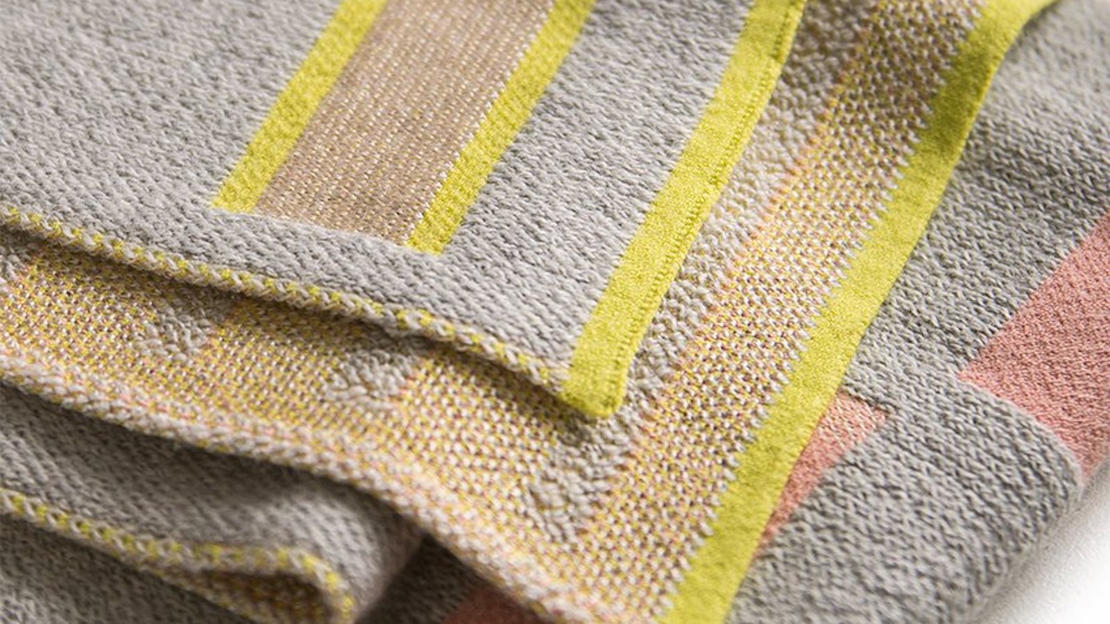 Additionally, they created three exclusive patterns each. Moreover, these beautiful jacquard knits come in the shades of neon, pastel, and black and white. You can have knitted ponchos, scarfs, cushions, and throw blankets with these wonderful designs that reflect the spirit of the Bauhaus.