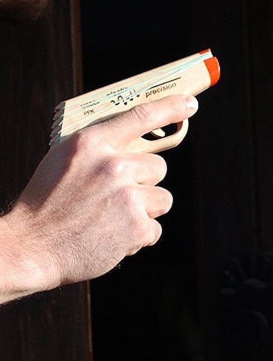 The patented semi-automatic design is precise and mesmerizing. Your co-workers will think twice about bringing a paper airplane to a rubber band gun fight