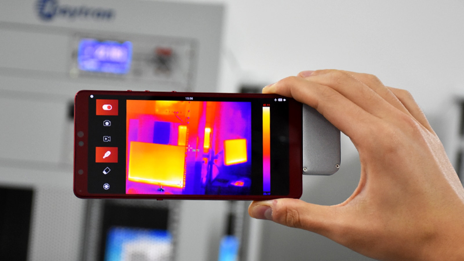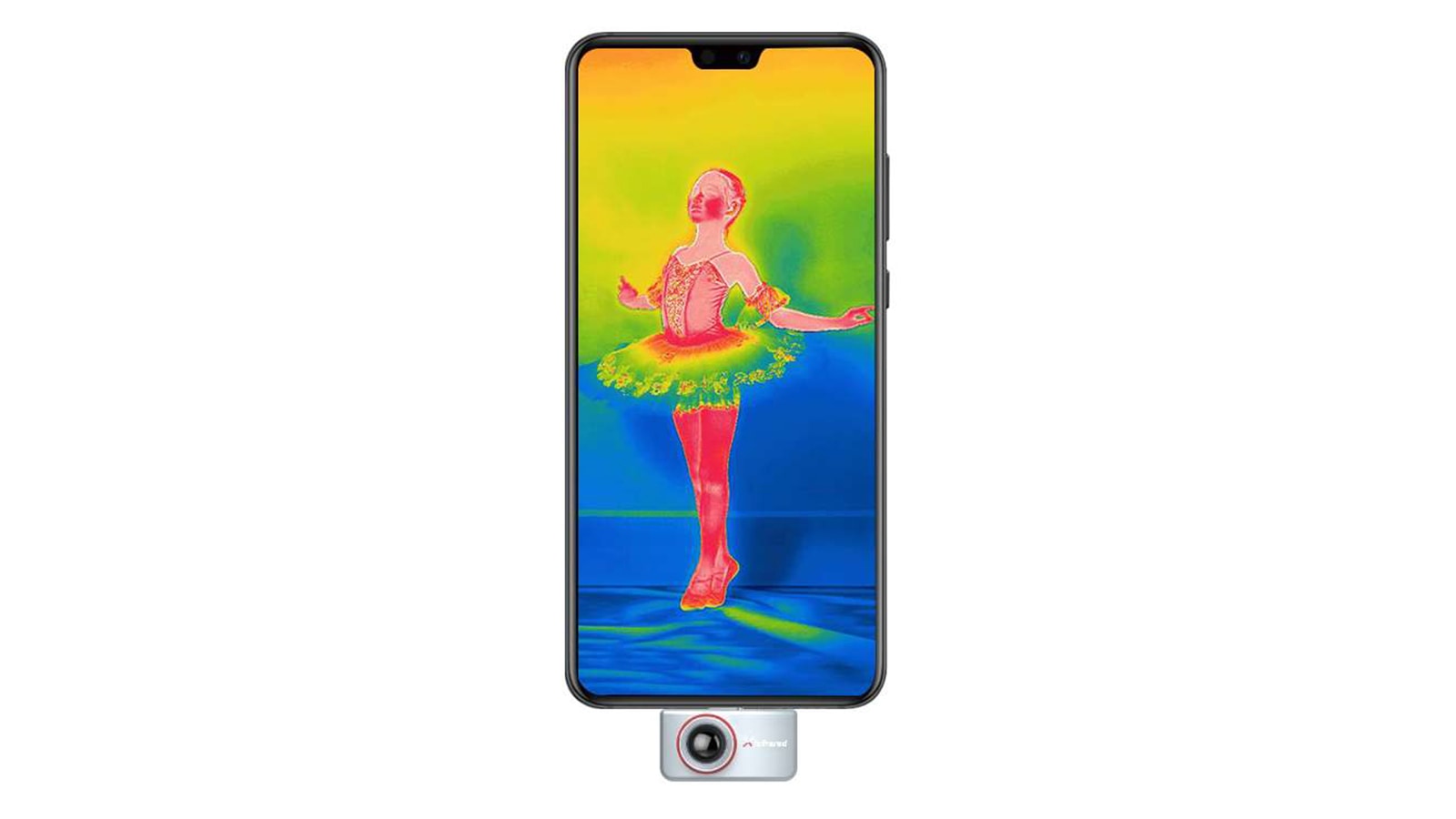 With its 384 by 288 resolution, this phone thermal imager has an adjustable and strong alloy lens and full-screen, 110,000-pixel display with temperature data.