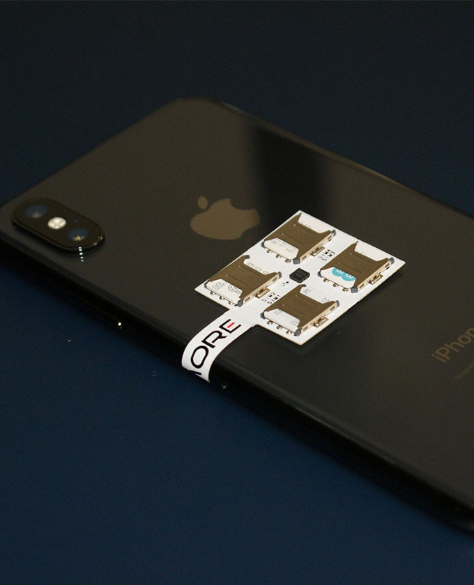 SIMore Speed X-Four iPhone Multi-SIM Adapter Case gives you access to four numbers: Overview