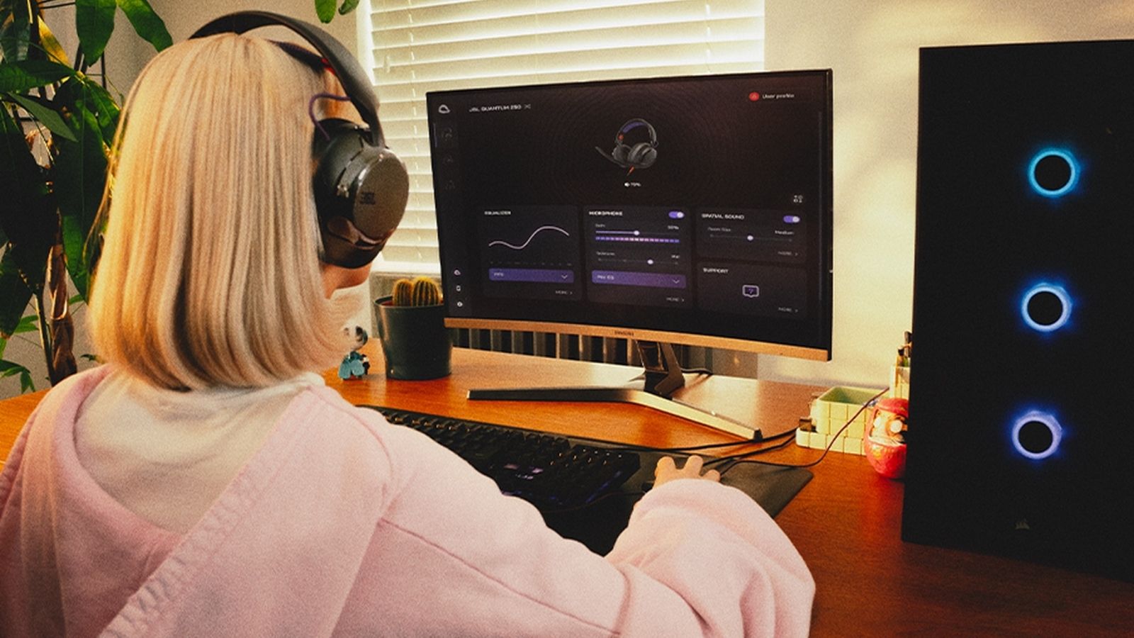 - JBL Quantum Spatial Sound: This audio processing adds depth and direction to game audio. It generates reflections and reverberation across frequency ranges to help you locate sounds in your environment.